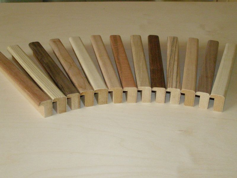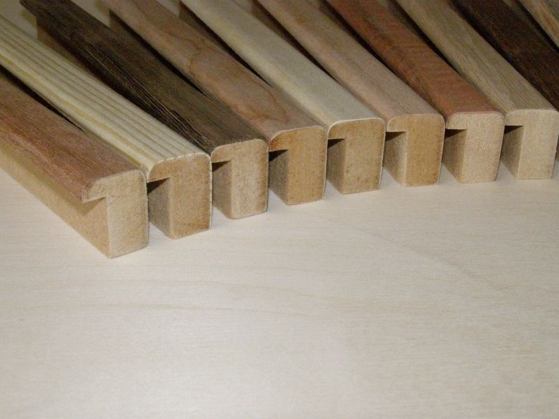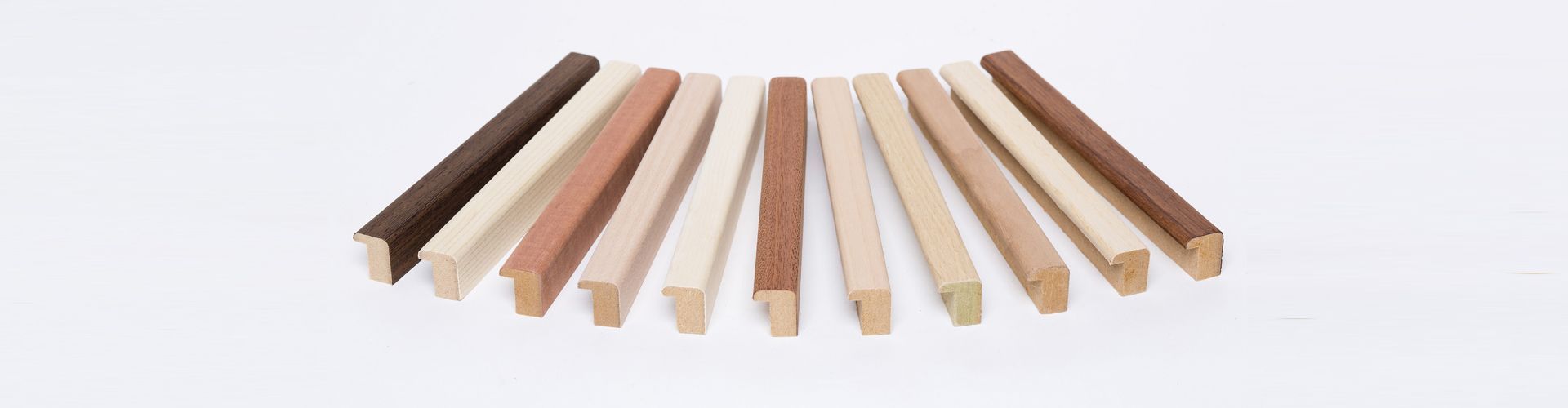 Na sklade máme zasklievacie lišty v drevine : americký orech, buk, čerešňa, dub, jaseň, javor, jelša, mahagon, palisander, smrek, tineo, wenge, zebrano.