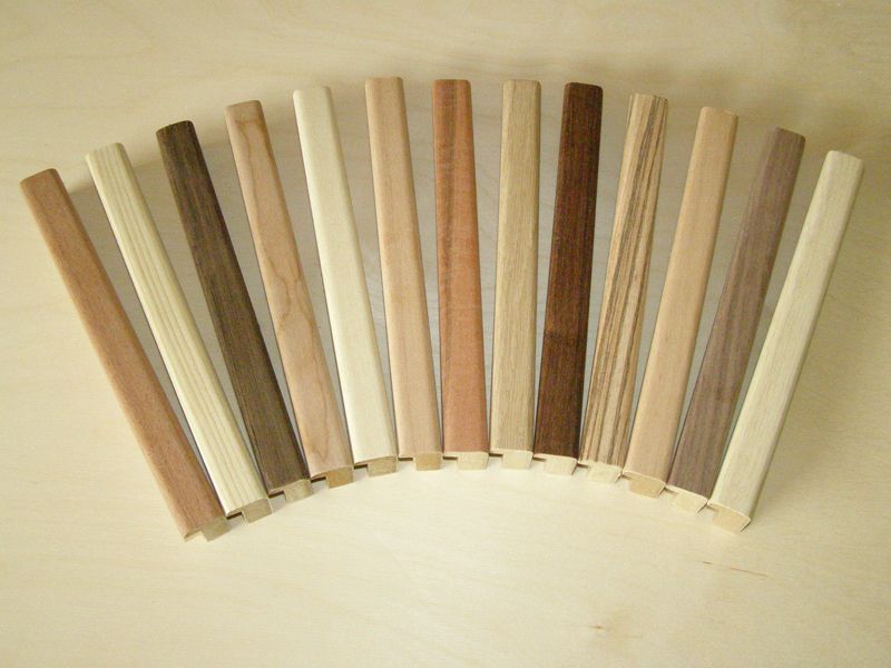 Na sklade máme zasklievacie lišty v drevine : americký orech, buk, čerešňa, dub, jaseň, javor, jelša, mahagon, palisander, smrek, tineo, wenge, zebrano.